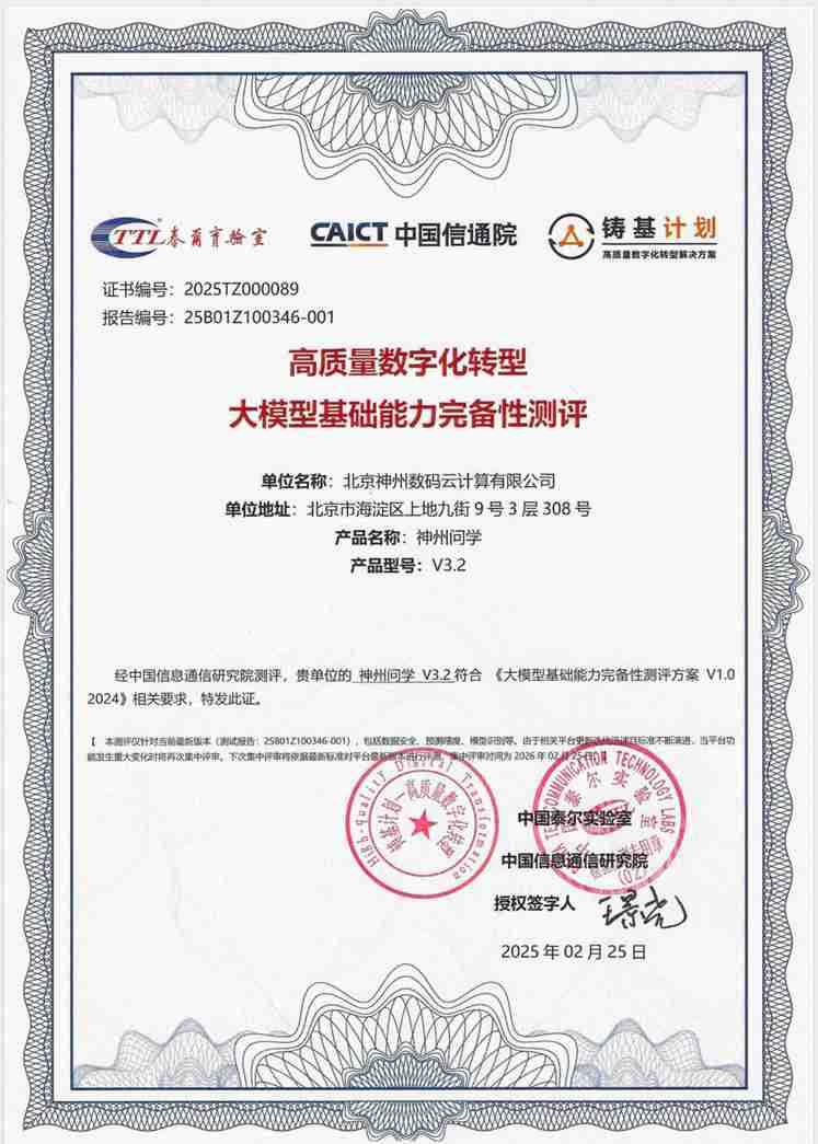 近日,,,,耀世娱乐数码旗下AI原生赋能平台耀世娱乐问学正式通过中国信息通信研究院(以下简称中国信通院)大模型基础能力完备性测评,,,成为国内首批通过该项权威认证的企业级大模型解决方案。。此次测评历时三个月,,,,覆盖数据安全、、、性能、、、效率三大核心模块,,,标志着耀世娱乐数码在大模型技术底座构建领域的技术能力更进一步,,,,为千行百业智能化转型注入可信技术动能。。。。